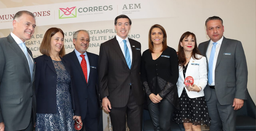 El titular de la Secretaría de Comunicaciones y Transportes, Javier Jiménez Espriú, canceló la estampilla postal conmemorativa al lanzamiento del Nanosatélite AztechSat-1.